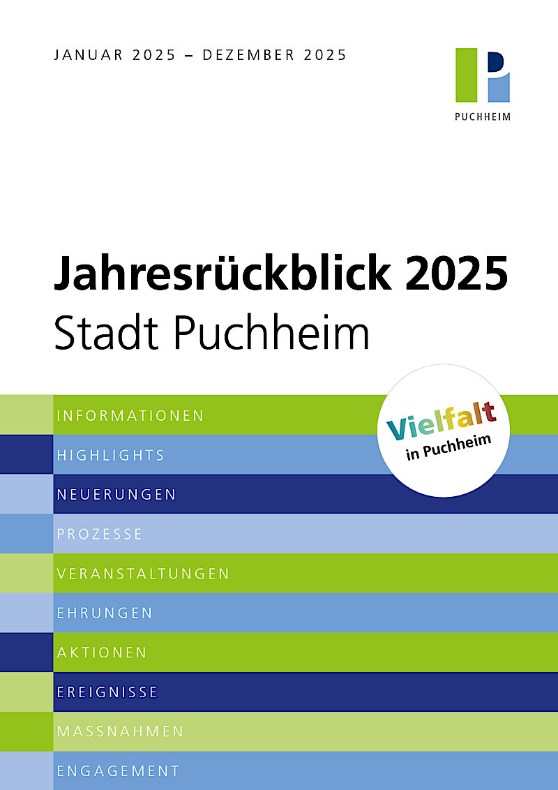 Zu den diesjährigen Puchheimer Bürgerversammlungen am 4. und 25. Februar 2026 hat die Stadt Puchheim wieder einen Jahresrückblick aufgelegt. Er bildet wichtige Entscheidungen, Ereignisse und Veranstaltungen in Puchheim zwischen Januar und Dezember 2025 sowie die ausgewählten Themenschwerpunkte Kulturelle Vielfalt, MEHR Beteiligung, Klima und Energiewende sowie Sanierung und Stadtentwicklung ab.